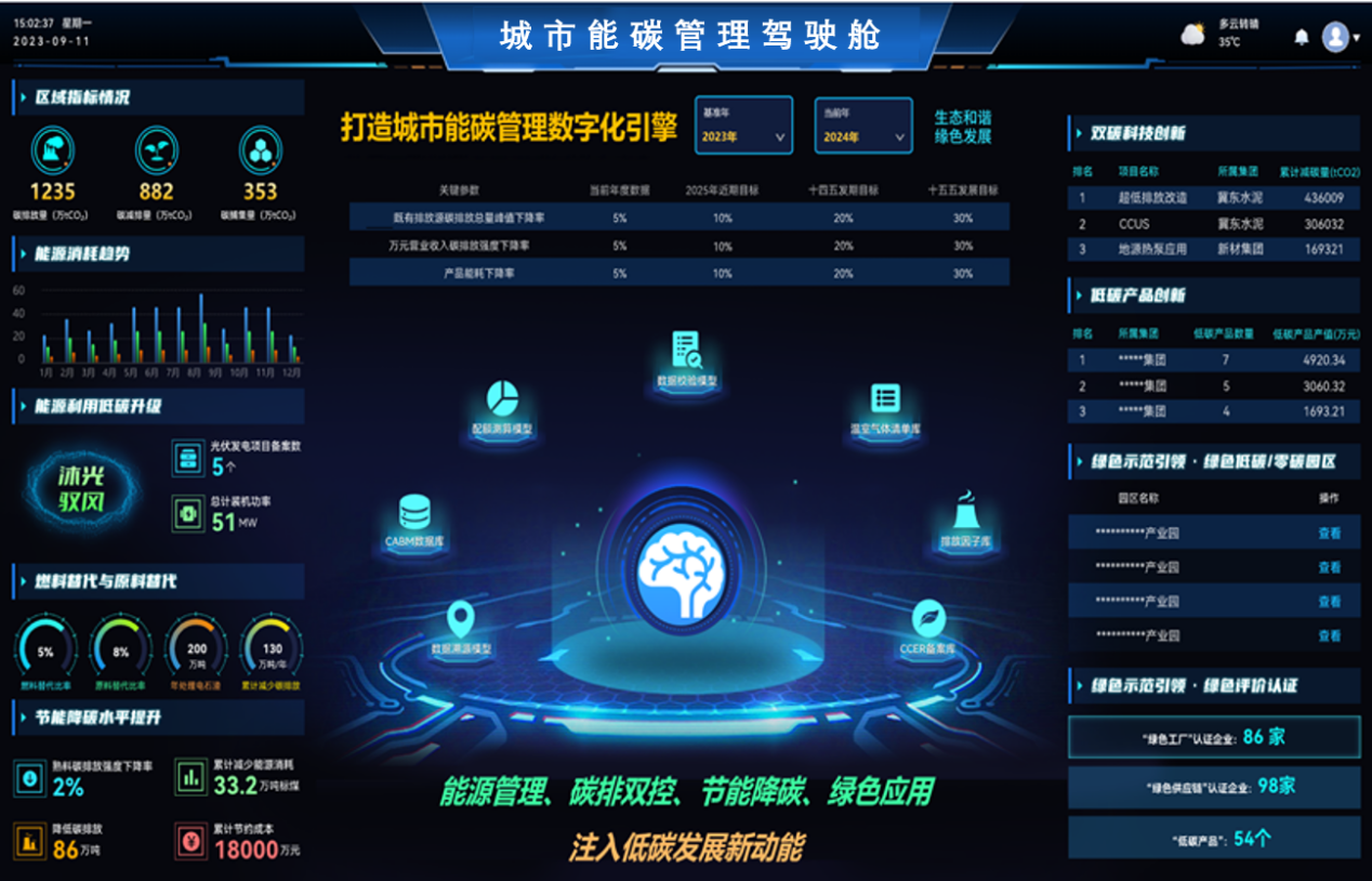 某城市能碳综合管理平台,通过建立能碳双重管理体系,能源领域开展综合能耗监测、能耗分析管理、绿色清洁能源应用管理,助力开展绿证交易服务等一系列服务,同步搭建了双碳服务的9碳服务能力体系建设,通过双碳的碳咨询、碳监测、碳核算,碳核验、碳足迹支持,推进各类组织的碳披露,碳市场交易,建设碳金融与绿色投融资保障机制,最终推进完成碳治理的工作,能碳融合,在既有双碳能力体系建设能力基础之上,升级为“能+碳”综合管理平台,高效解决了能碳产业缺乏指导、缺乏方向,缺乏工具与实现路径的一揽子问题,助力地方提升双碳背景下的综合竞争力。